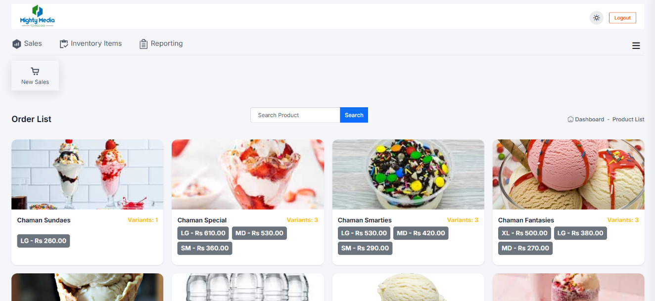 View your entire item list with details like stock, price, and SKU. Easily add new items with descriptions, categories, and cost price. Stay organized and always updated on what’s in stock.