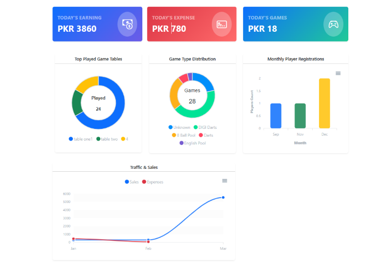 Easily manage bookings, players, branches, memberships, and earnings all in one place!